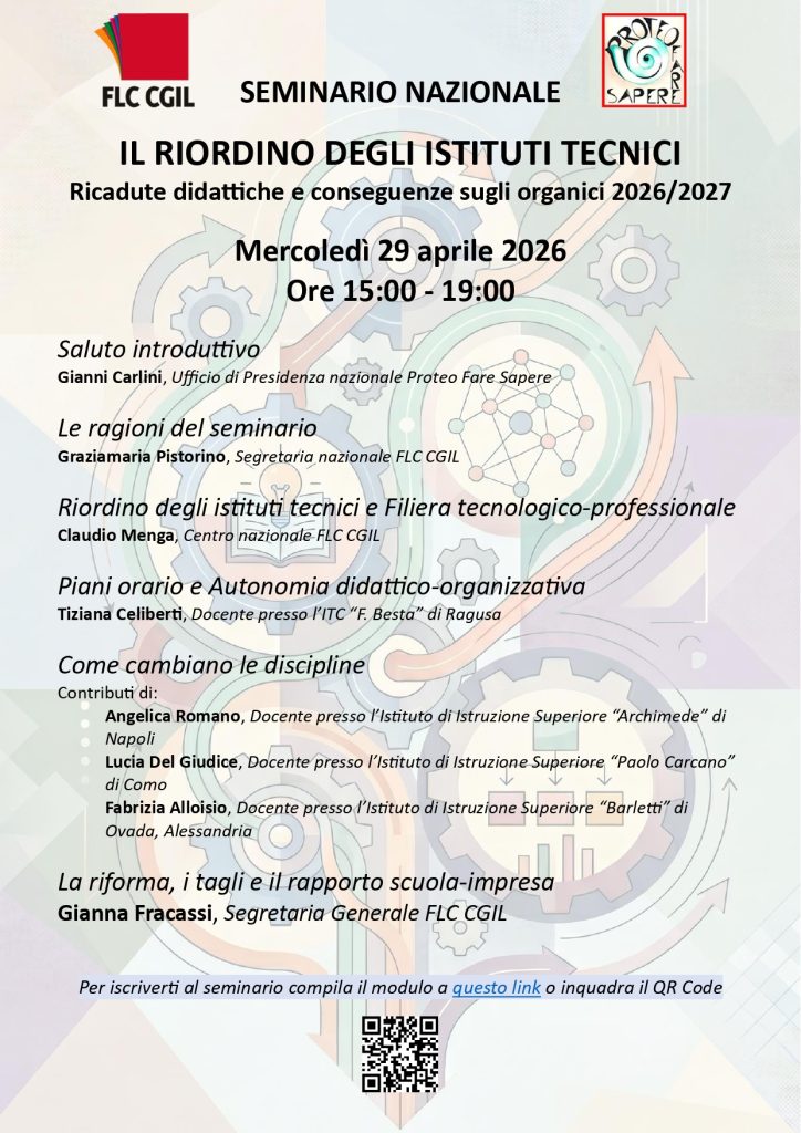 L’iniziativa, organizzata dalla FLC CGIL e Proteo Fare Sapere, si terrà dalle ore 15:00 alle 19:00. È possibile partecipare inviando il modulo di iscrizione indicato […]